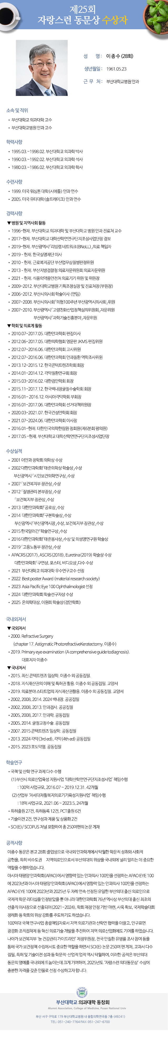 제25회 자랑스런 동문상 수상자 - 이종수 (28회)